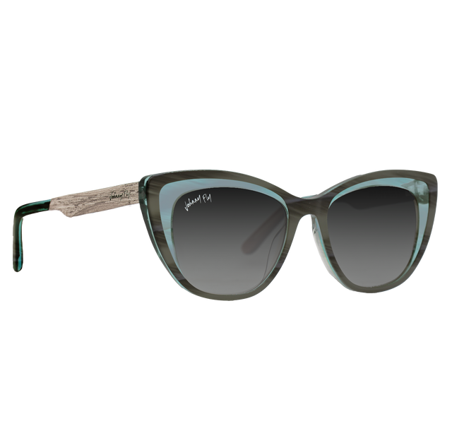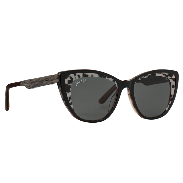 This frame features our signature wood arms paired with an acetate front, medical grade spring hinges and polarized lensing that makes them Johnny Fly.